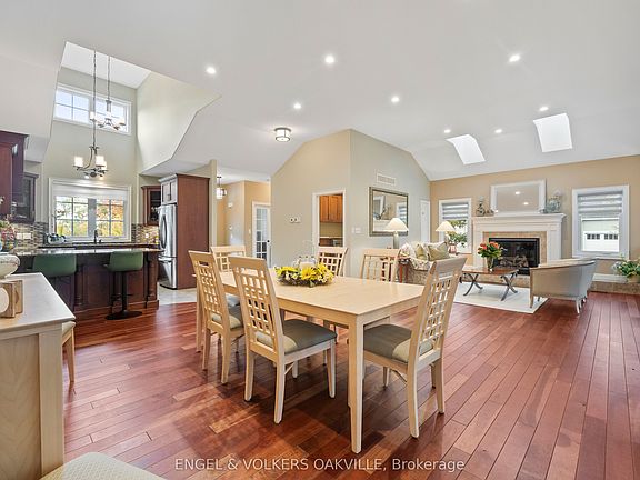 Welcome to this stunning 4-bedroom, 3-bathroom bungalow, offering an expansive 2,230 sq. ft. on the main level and an additional 1,927 sq. ft. of beautifully finished lower-level space. This home is designed for comfort and elegance, featuring vaulted ceilings and skylights that flood the main floor with natural light, creating an airy, open atmosphere throughout.The Great Room and Recreation Room are both enhanced by cozy fireplaces, making them perfect for entertaining or unwinding. All the windows are tinted and increase daytime privacy by making it harder for people outside to see in without compromising your view outward.The main floor boasts 2 generous bedrooms and 2 full baths, while the lower level provides 2 spacious bedrooms, both with ensuite privileges, offering versatility for family and guests. The gourmet kitchen is a chefs dream, and designed for functionality and style. The adjacent winterized Sunroom opens to a private, beautifully landscaped backyard, which is truly a work of art. Perfectly maintained and across the street from a wooded area, it provides a serene retreat. Additional features include a double car garage, ensuring ample parking and storage space. With an abundance of windows on both levels, including the lower level, this home is bathed in sunlight year-round, enhancing the warmth and charm of every room. One of the major upgrades are the heated floors in the basement which enhance comfort and energy efficiency This home is a true masterpiece of design, comfort, and natural beauty.