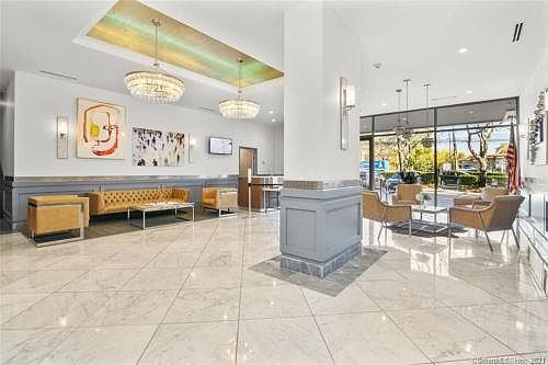 Enjoy living in this immaculate and spacious downtown 2BR,2BTH condo w/most utilities included New BR w/w carpet, new light fixtures just installed. Freshly painted This corner Hayes House condo also offers an open layout with open views of Stamford Large rooms plus a large balcony with vista views including a glimpse of Long Island Sound Excellent closet space throughout. Each BR with separate full bathroom. Optional renovated fitness room in building for resident use@$15/month. Recently renovated attractive and comfy lobby offers concierge services. Additional features included: bike room, storage, and expansive common patio with lounge chairs and barbecue for resident use. 1 garage parking space is included, and an extra space can be leased. Visitor 1 hour parking is available in front. Creditworthy tenants only will be considered Convenient to everything downtown Come and get it