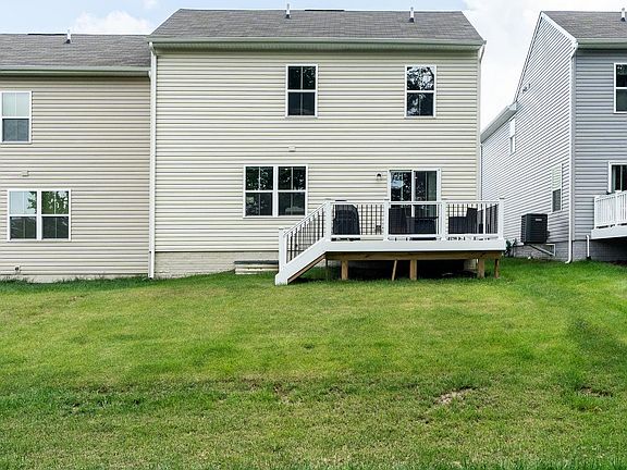 Built in 2022, why wait for new construction? The main level offers an open layout with a lot of natural light. Beautiful eat-in kitchen with white cabinets, stainless appliances, a large island, pantry and separate dining nook. The upstairs features 4 spacious bedrooms and two full baths including an updated shower and dual vanity in the primary bedroom and walk-in closet. Upper level laundry with washer and dryer offer convenience. Full basement with egress and bathroom rough in, is ready for you to finish for additional living space. Enjoy evenings on the new composite deck overlooking the tree-lined rear yard or walk to the clubhouse, community pool, splash pad, playground, picnic pavillion, community field and dog parks. Close to commuter routes, local restaurants and boutiquest in downtown North East and several marinas. Enjoy low maintenance living in this amenity filled community.