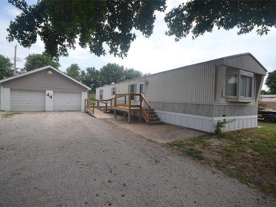 Here's your opportunity to own your home at an economical price. This mobile sits on its own ground so No Lot Rental! The entire home has been repainted and has new Luxury Vinyl Plank flooring throughout. Appliances remain with home. Split bedroom plan with Master Suite on one end and second bedroom and bath on the other. Large Living Room with cathedral ceilings and open to the eat-in Kitchen. Plenty of cabinet space and countertop space. Nice laundry room tucked in a hallway and conveniently located. Stairs and a ramp lead to the porch/deck and entrance making it handicap accessible. Oversize detached two car garage with workarea and man door. Fenced backyard. All this at an economical price. Financing is Not Available.