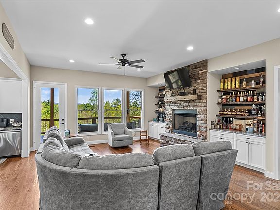 This 2022 built home features stunning views of Shortoff Mountain. Great room wi/built ins and gas stone fireplace. The inviting kitchen is complete with large island with seating, Thor six-burner gas range, large pantry and adjacent dining area. Main level primary suite for ultimate convenience, along with a spacious office ideal for remote work. Two additional bedrooms, full bath and laundry room complete the main level. Venture to the finished basement, where you'll find guest kitchen with sink, microwave and refrigerator, large rec area & family room—perfect for entertaining! A dedicated bedroom & bath provide privacy for visitors, while abundant storage keeps everything organized. Step outside to enjoy the large covered deck, equipped with an outdoor kitchen featuring a Blackstone, propane grill, and sink. The lower-level patio & firepit are perfect for enjoying the private rear yard. Two car garage with level driveway. Gated community at Lake James just 10 minutes from Marion.