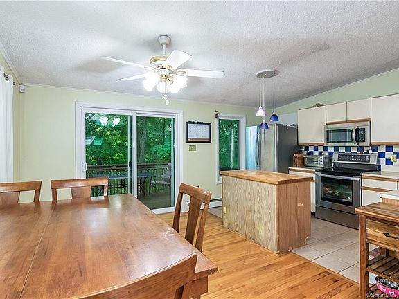*Seller is requesting highest and best by 7:00pm Tuesday, July 6th* Secluded raised ranch home is a hide-away in the woods! This is the last house at the end of a private road, offering an abundance of privacy. The main level is open-concept with vaulted ceilings, skylight, and a brand new slider leading from the dining room to your giant wrap around deck. The L-shaped kitchen has a center island and flows easily into the dining space. Down the hall is the full bathroom, with another skylight. The master bedroom has double closets and a full en-suite with a walk-in shower. The other 2 bedrooms are also located on the main floor. All three bedrooms have hardwood floors. The lower level is partially finished, has a wood burning fireplace, sliders (brand new), a half bath, the utility room (with washer and dryer hookups), and access to the gigantic two car garage. The lower level offers options as a family room, office space, a home gym, or more! This home is waiting for someone to come in and update the kitchen and bathrooms to their tastes. If you want privacy and proximity, this is the home for you!