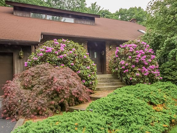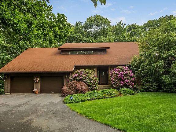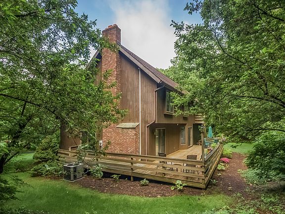 Don't miss this very well cared for one owner contemporary home in a sought after neighborhood that is minutes to shops and easy commuter routes. The open floor plan captures your eye as soon as you enter the house. The living room - dining room combination features a vaulted ceiling, skylights, sunken seating area and a beautiful balcony. A French door leads you to the open kitchen - family room area. The family room features a fireplace and plenty of wall space. The kitchen has ample counter space plus an island and a breakfast nook with a slider to wrap around deck. The house has a first floor laundry that leads to a covered porch. An office is also located on the main level. The spacious master bedroom features a very large walk in closet, private bath with jetted tub and an outside balcony. There is an additional 400+ square feet of finished space in the lower level not included in the original square footage. The home is wired for a generator & has a Buderus furnace. A lovely lightly wooded lot complements this wonderful home.