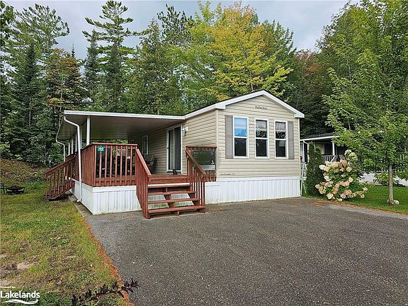 Turn-Key Seasonal Living at it's best. Located on a Premium Lot this 2 bedroom with built in closets and night stands, 1 bathroom, 3 season home will make your seasonal getaway fantastic! Full kitchen and spacious living space. Backing onto the woods, there is an abundance of privacy! Storage shed for all the beach toys. Huge deck for entertaining. You will not be disappointed!