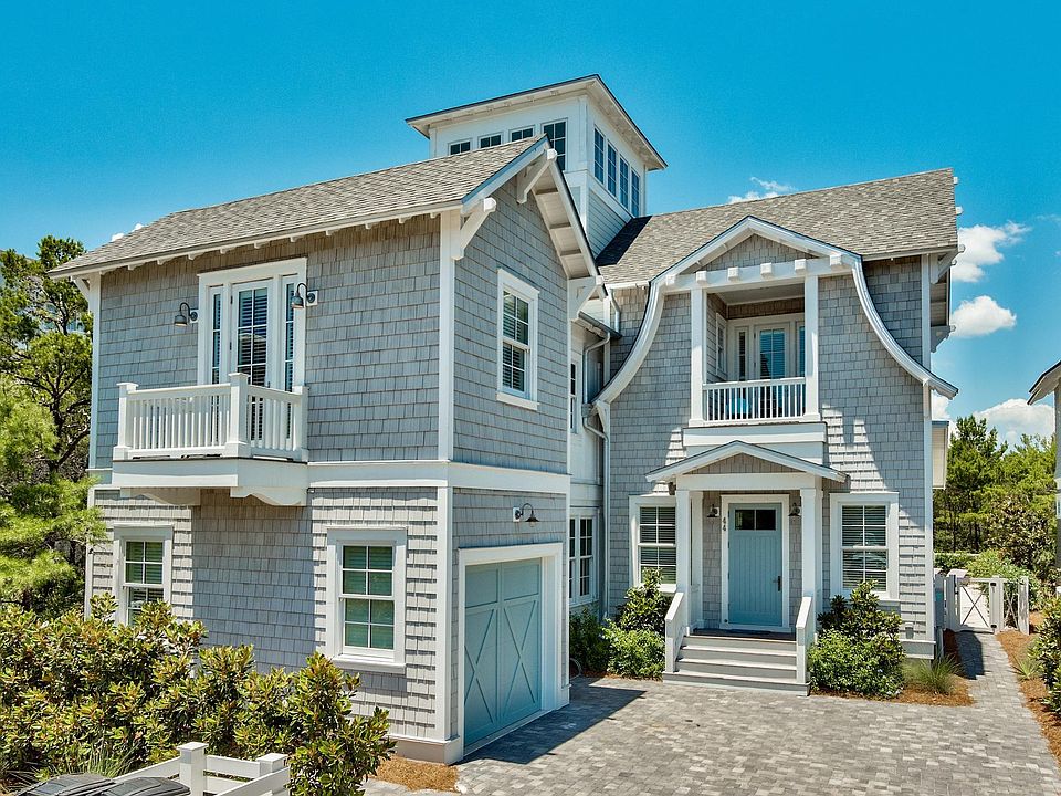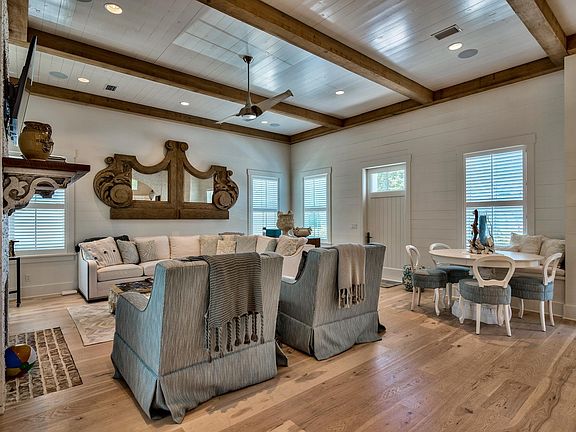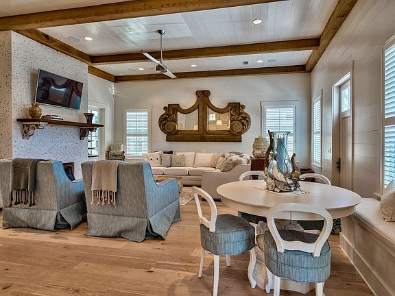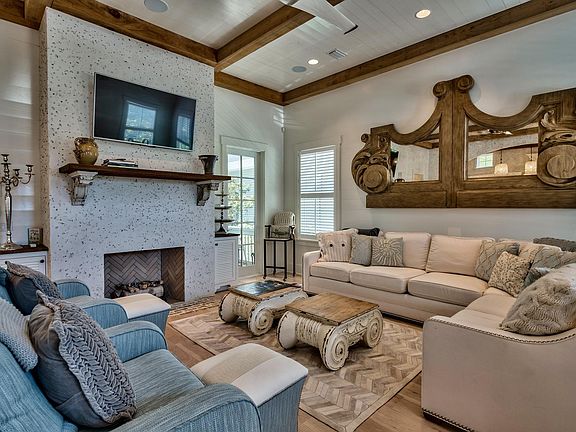 This exquisite home is a Watersound spectacular located just steps from the beach! Amenities include private heated pool backing up to Puttering Park, outdoor shower leading to master suite. Floor plan features 5 BR suites with 5 full & 2 half BA, large open light and bright kitchen with high end Viking Stainless Steel appliances. Circular staircase leads to 3rd floor viewing tower with Gulf views. White washed oak floors throughout, coquina shell fireplace and accents. Exquisitely furnished with tasteful decor.