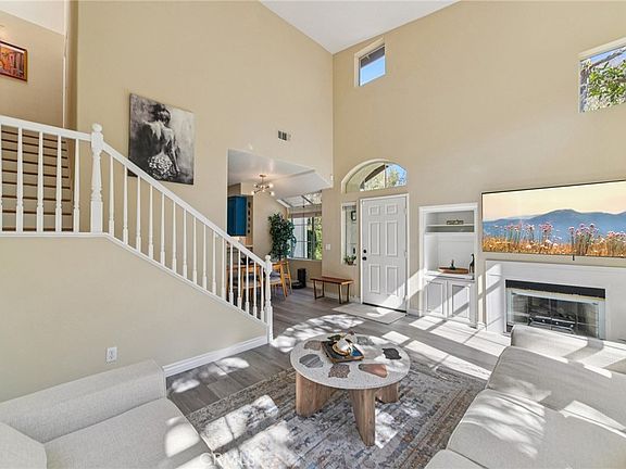 Welcome to this beautifully upgraded 3-bedroom, 3-bath end-unit townhome-style condo in the heart of Rancho Santa Margarita. Recently refreshed throughout, this move-in-ready home offers a light and airy floor plan with modern finishes and thoughtful upgrades at every turn. A highly desirable downstairs bedroom and full bath provides comfort and flexibility for guests or a home office. The spacious living and dining areas feature a renovated fireplace and flow seamlessly into a private outdoor patio—perfect for entertaining, gardening, or simply relaxing in the California sunshine. As an end unit, the home enjoys extra privacy and natural light. The fully remodeled kitchen showcases painted cabinetry, quartz countertops, a stylish backsplash, an upgraded sink and faucet, and a pantry with added storage. Premium appliances include a Samsung smart refrigerator with Family Hub, smart oven, Bosch dishwasher, plus a Samsung washer and dryer. The laundry room has additional cabinets for convenience. Upgrades extend throughout the home, including luxury vinyl plank flooring, new baseboards, upgraded stairs, fresh interior paint, modern stand-alone light fixtures, and premium switches, plugs, and lighting. Every bathroom has been tastefully renovated with new sinks, faucets, mirrors, fans, toilets, shower heads, and flooring. The luxurious primary suite features a customized walk-in closet, built-in double vanity with smart mirror, and a spa-like bathroom with barn door entry, premium tile finishes, a European rain shower, and glass enclosure. Additional highlights include: Full-house water filtration system with reverse osmosis, Lighted modern ceiling fans in every room, 3-year-old HVAC system and water heater, Fully paid Vivint security system, New garage door mechanisms, Professionally installed 48A Level 2 EV charger, Patio upgrades with new sprinklers, timer, palm tree, and flowers. Conveniently located near parks, trails, shopping, dining, and Rancho Santa Margarita’s highly rated schools, this stunning end-unit offers the perfect blend of comfort, style, and modern amenities.
