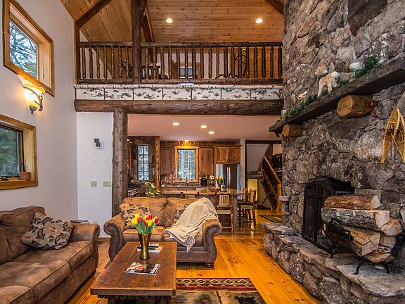 This custom built Adirondack style home was built in 2013. It is situated on a 5 acre private wooded lot that has breathtaking views of Lake Winnipesaukee.