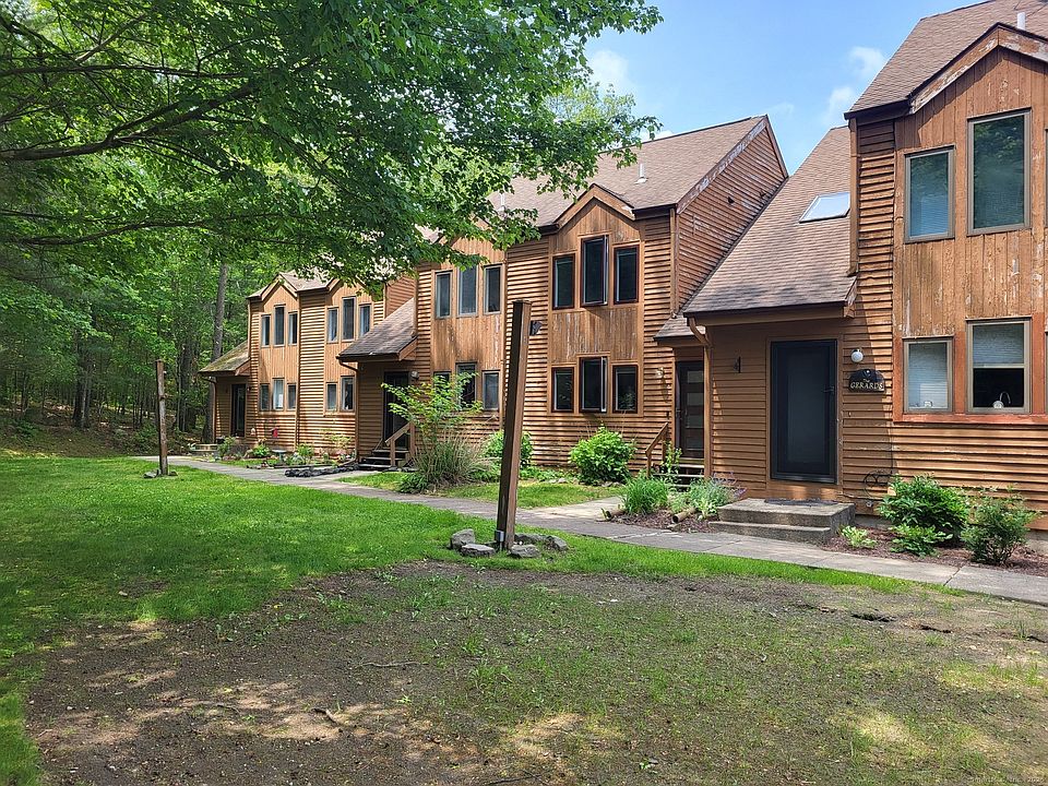 Welcome to Forest Edge condominiums located 3 minutes' drive from the quaint downtown area of Stafford Springs, with quick easy access to I-84. Owner since 2021 has installed all new windows, remodeled the main 2nd floor bathroom & installed a second set of washer/dryer hookups (in addition to the basement), updated the kitchen, 2024 flooring throughout, pine stairs and installed a new pellet stove that can heat this entire 2 bedroom 1 & 1/2 bath unit. 2 parking spaces w/drive under garage, spacious west facing deck. Includes Frig, stove, dishwasher, washer & dryer. There are still a few items to finish up on such as a couple closet doors, paint in a few areas and stain/paint the deck. Association acreage abuts Hyde Park at the 143 acre Woodlawn Trail hiking area section, amongst many parks & lakes/ponds in town including beautiful sandy town swimming beach for residents only. Downtown features shops, a coffee shop, brewery, winery & restaurants. Located 23 minutes from the largest shopping complex of stores in the state, Buckland Hills, 32 minutes to Hartford