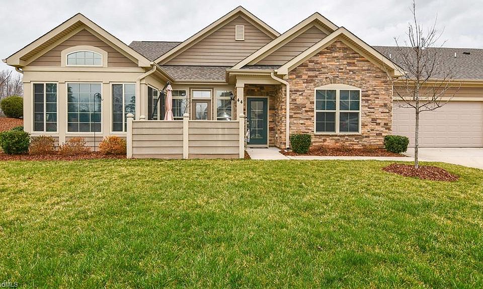 Hard to find 2 bedroom unit at Villas at Sedgefield. Beautifully appointed & maintained, this former model home is very private, & can have 2 master suites if needed. Large open floor plan is great for entertaining---kitchen with island, granite counters, backsplash, butler pantry/bar combo, & lots of cabinets. Beautiful light filled sunroom, large laundry & mudroom, & 2 pantries. Private fenced patio area, gas FP, & beautiful hardwoods. This home is ready for Spring and new owners! Don't miss out!