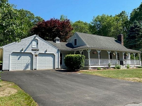Motivated Seller!!! Looking for a move-in ready Cape home in a nice area? This is a must see 3 bedroom, 2 bath Cape with a welcoming wrap-around Farmers Porch! Front yard features a cobblestone lined brick walkway and irrigation. Two car attached garage is very spacious for the hobbyist with convenient stairs for multi-use space above. Both bedrooms on the 2nd floor have two closets. Improvements in 2004 per homeowner: vinyl siding, clad trim, tilt-in windows, 50-year architectural shingled roof, tile, hardwood flooring and whirlpool tub (receipts provided). Great mudroom between the garage and kitchen that leads onto a deck with a private and quiet back yard and an outdoor shower. Many mature trees and bushes have been planted over the years. Three sheds with one having electricity. Septic updated May, 2007. Buyer and/or Buyers Agent to verify all information within.