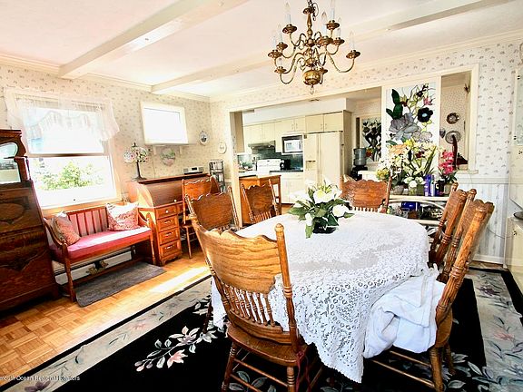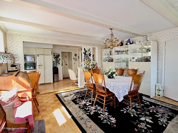 Views of Shark River from your back yard ! 1784 sq ft ranch is a rare find. Large rooms and lots of possibilities. Hardwood floors throughout the main level. Formal Dining Room, Kitchen with Breakfast Nook. Big Living Room, and Library or den. Family Room with a powder Room. . Bathroom is huge with a makeup room. Full basement with lots of storage. Detached Garage with a workshop. Wonderful covered front porch. Fenced side patio. HWBB Gas heat. Central AC present but not working. Estate Sale sold AS IS. No seller disclosure. Bring your imagination and make this your own spectacular home.