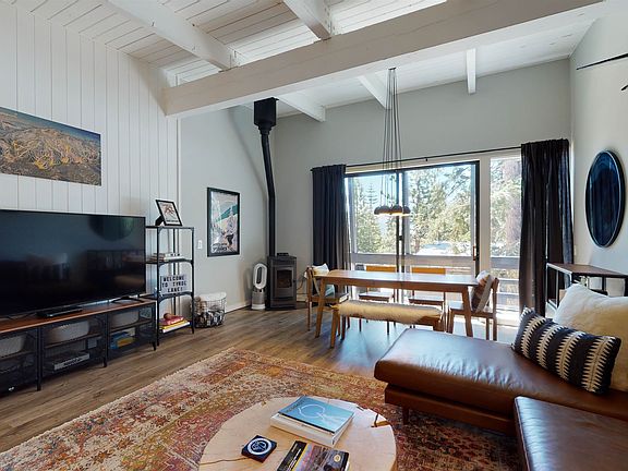 A rare gem in Mammoth; a truly "turn-key" property! This immaculate and remodeled, 2-bed/2-bath 2-story condo with a private deck invites comfort, and exudes mid-century modern elegance. South-facing and sunny, with mountain views, and with an open-concept floorpan and vaulted ceilings, you'll enjoy a perfect setting for relaxing on a stormy day or entertaining guests at night. No small detail was left unfinished in the the mixture of geometric tiling, modern kitchen and bathroom fixtures, white quartz countertops, stainless steel appliances, and beautiful furnishings and textiles to match. The Tyrolean Village complex is located just a short distance from Canyon Lodge and the Village at Mammoth and just steps away from the Lakes Basin bike path and shuttle service.