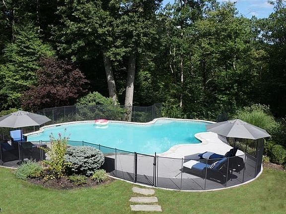 Private, comfortable and bright built in 2006, spectacular colonial home with tremendous curb appeal and resort-like backyard. Most desirable location at the key to the cul-de-sac at the Van Cortland Estates in Basking Ridge. 6 generously sized bedrooms and 4.2 luxurious baths. High ceilings, hard wood floors, extensive trim work, moldings and wainscoting. Elegantly painted interior. Open floor plan. Formal Living Room, Dining Room and dramatic 2 story Foyer. Chef’s Kitchen has top of the line appliances, granite counter tops, beautiful backsplash and an island. Kitchen is open to expansive Family Room and has new French doors to the deck. Private study with adjoining wet bar. Master Suite with nursery/sitting room and his and hers custom walk in closets. Awesome, recently finished walk out basement. Au pair/in-law area. Walk up attic with expansion possibilities. Oversized 3 car attached garage. Outdoors include fire place and beautiful salt water heated in ground pool with new multi-level patios and walk ways. Whole house generator. Convenient location to shops, schools, highways and NYC Midtown Direct trains. Top notch Bernards Twp. Schools. 6,758 sq. ft. of living space on 3 levels. 3.31 acres.