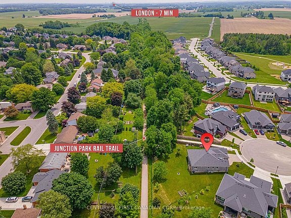 Welcome to 44 Violet Court, nestled in the charming community of Ilderton, just minutes from North London! This inviting 2018 Sifton-built home blends small-town charm with city convenience. Set on a quiet court backing onto the tree-lined Junction Park Rail Trail, it features a rare, oversized pie-shaped lot-space you simply won't find anymore at ~.40/acre! Step inside to a bright foyer with 16-foot soaring ceilings and transom window with clear sight lines through the home and to the lush backdrop. The chef's kitchen boasts premium KitchenAid stainless steel appliances, tri-tone cabinetry, and a spacious pantry. It flows into the dining area with sliding doors to a stunning, nature-filled backyard, and into the open-concept living room centered around a natural gas fireplace and elegant tray ceiling detail. A flexible front room provides options for a playroom, office, formal dining, or sitting area. Three generously sized bedrooms, including a primary suite with walk-in closet, oversized picture window and a spa-like ensuite featuring a tiled shower with glass doors and dual vanities. A second full bath completes the sunlit main floor. Purposefully designed, the custom 25x25 double garage is engineered to comfortably fit two vehicles with extra space for storage-perfect for active families or hobbyists.The finished lower landing works well as an office nook, with double doors leading to an expansive unfinished basement (with bathroom rough-in), offering space for two more bedrooms and a large recreation room-ready for your personal touch.Enjoy a family-friendly court where kids play hockey, ride bikes, and explore the nearby Timberwalk Estates Park just a short walk down the trail, immersed in nature. With great schools and just minutes to North London, this is the lifestyle you've been looking for and must be seen to be truly appreciated! Full List of Sifton Above-Code & Energy Efficiency Features Available.