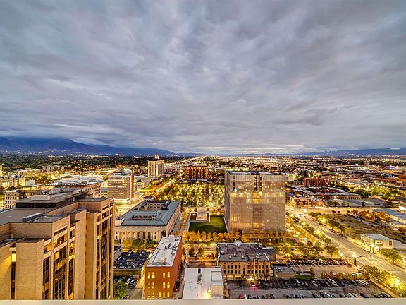 Gorgeous condo in the heart of downtown Salt Lake City! Condo is South facing on the 19th floor with stunning city views, 2 large bedrooms, 2 full baths (remodeled owner's suite bathroom), eat-in kitchen, formal dining room, and plenty of closet storage space throughout. Fantastic parking space which includes 3 storage lockers. This condo is in excellent condition and one you do not want to miss! Join us for the open house this Saturday or contact agent to tour it today!