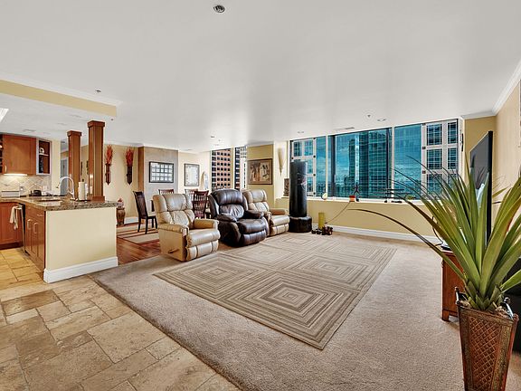 PRICE IMPROVEMENT Enjoy sweeping valley views from this updated 15th-floor condo on the South Tower, featuring a modern kitchen with granite countertops and beautiful cabinetry. The open layout offers spacious living and dining areas, large bedrooms, and great closets. Amenities include a pool, sauna, racquetball court, rooftop entertaining area with grills, seating, hot tubs, and a kitchen, plus 24/7 security, facial-recognition entry, underground parking, fitness center, library, billiards room, and package service. Prime downtown location! Square footage figures are provided as a courtesy estimate only and were obtained from the county. Buyer is advised to obtain an independent measurement.