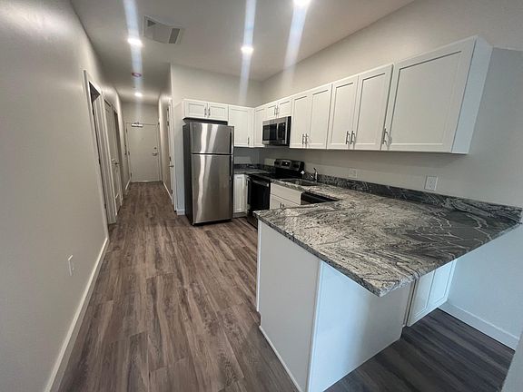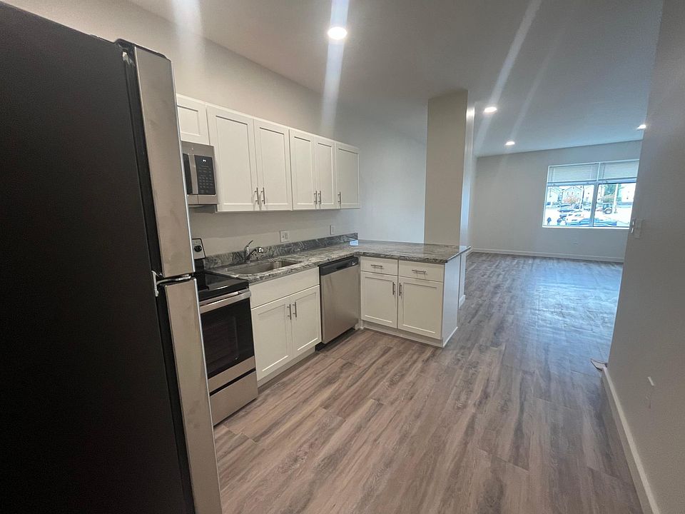 This mid-century building was reimagined into luxury apartments. 44 Bridge Street is located in the heart of downtown Manchester and was included as part of the City-wide Mural Project where a nationally-known artist created a colorful contemporary mural on the exterior. This second story unit has windows facing north, the kitchen has a peninsula with additional storage, there is also an extra pantry closet, and additional space in the bathroom for storage. This two story building has an elevator and large windows throughout. All units feature granite countertops, white shaker-style cabinetry, air conditioning, in-unit washer and dryer, high ceilings, ample closet space, modern vinyl plank flooring, bathtubs, and stainless appliances. Tenant pays all utilities (heat/AC is electric heat pump). Parking is at the abutting Pearl Street parking lot through the City of Manchester, $60 per month. Move in Nov. 1 or later. 4, 6, 9, or 12 month leases available. Tenant pays all utilities. Cats and small dogs considered. Parking in through City of Manchester at adjacent Pearl St. lot for $60 per month.