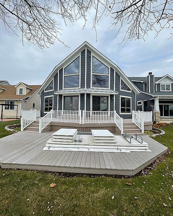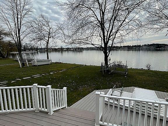 Treat yourself to this amazingly spacious, lakefront home. Complete remodel and addition in 2020, including new 1,200sf 3 car garage. Open floor plan with vaulted ceilings and a stone fireplace in the great room. Island kitchen with lots of storage, custom cabinetry, breakfast bar and newer appliances. Lakeside you'll find lots of windows to enjoy the lake views. Two master suites on the main level. There are four more bedrooms, two full baths and a 20’x15' loft (family room) on the upper level. The lot is level and the beach has been improved. 50ft of lake frontage.