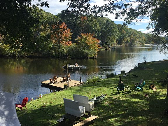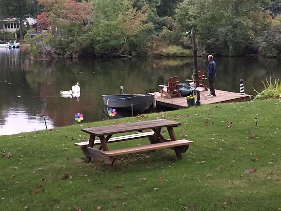 Charming lake front offers 1st floor living & finished walk-out basement. Newer hardwood floors sweep across this open floor plan! living rm to dining & sitting area. Kitchen opens to spacious deck. Two main bedrooms and full bath on 1st floor. Lower level walk-out boasts family rm, bedroom, bonus rm, laundry rm, workshop and storage area and opportunity for full bath room. Walk out to lower level lake front with dock. Tranquil views to the scenic island. Toss in your kayak or hop on your boat. Take a stroll, bike ride or run around the private lake community offering several beaches & club house. Commuter location just off rt 15 & minutes to restaurants & shops. Swim, fish, boat, ice skate & more. Escape to this very special lake house and enjoy year round living, low taxes and be in for this summer!