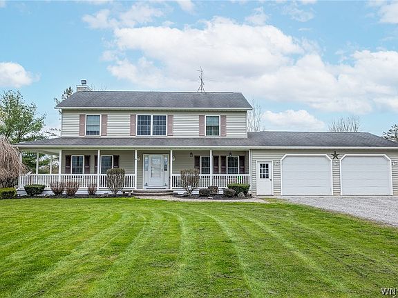 ***BACK ON THE MARKET, BUYER COULD NOT SECURE FINANCING!***Welcome Home! Spacious 4/5 bedroom, 3.5 bath Colonial sitting on 4.5 gorgeous country acres but only minutes from NYS Thruway. Walk in through the grand foyer with staircase. To the right find the formal dining room and 1/2 bath. On the opposite side of the foyer is a perfect office/sitting area, and possible 1st floor bedroom. Enter the large Kitchen with plenty of counterspace, all stainless appliances, large island and cabinets galore! Off the kitchen is a large family room with wood burning fireplace. Cozy up there or head outside through glass sliding doors to your expansive elevated deck overlooking your private backyard oasis. Enjoy the lower level patio or hot tub for more outdoor fun! Beautiful primary suite with jacuzzi soaking tub, separate shower and walk-in closet. Additional living space in the fully finished walk out basement in-law suite, with kitchen, bedroom, bathroom and living room! Extra space in garage to store your toys/vehicles. 2nd floor laundry, outbuilding barn, sheds and so much more!! With attached garage and barn/outbuilding, can easily store 4 vehicles. Pembroke Central School District! Square footage
