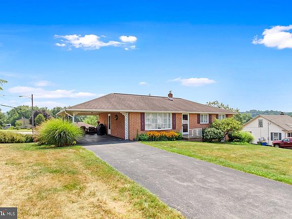 Solid brick ranch home, exposed basement with 2 car garage under. Walk out from family room. The convenience of 2 full baths. Aluminum soffit, gutters and downspouts. In addition to garage space, large Carport functions as wonderful gathering area with front driveway for additional parking. Hot water is integral with the oil furnace. Basement floor is heated including the garage. Adjacent to public playground, basket ball court and ball field. Within walking distance of the Rustic Cup coffee shop and Pizza Town. Great for river lovers, just few minutes away from the Long Level Marina.