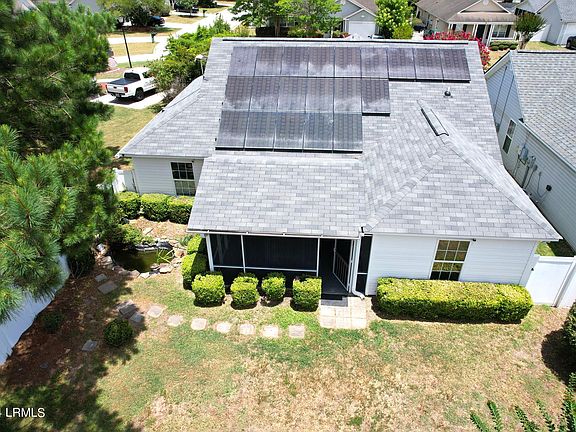 As cute as a button! Lovely 3 Bed 2 Bath home w screened Lanai,1 Car garage in the heart of Bluffton! Open floor plan living, LVP floors in Living, Dining & traffic areas. Kitchen w Epoxy counters, newer SS Appliances & Pendant Lights, Pantry & extra storage. Great bed separation, Primary Bed w carpet & Ensuite Bath w large Walk-In Closet. Good size Guest Beds, great Guest Bath. Large, screened Lanai under solid roof overlooks Privacy Fence backyard & koi pond! Separate Laundry Rm, pulldown stair attic, partially floored. New Roof 2022, Solar Panels fully paid for. Carpet & Stove allowance w acceptable offer! SEE MATTERPORT 3D VIDEO