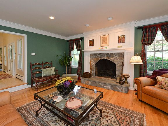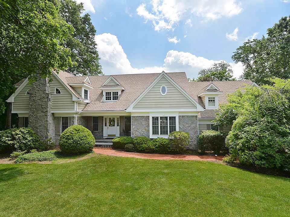 Call Laura Gill at 201-888-2900. Curb appeal abounds at this classic clapboard & stone colonial nestled into a quiet cul de sac in the sought-after Lincoln school district. The house is airy with a double height ceiling and double staircase in the entry. LR with wet bar, built-ins and gas fireplace (1 of 4 in the house). The star of the show is the family room with soaring beamed ceilings & custom millwork. The spacious eat in kitchen features maple cabinetry, stainless steel appliances, center island & walk in pantry. Two entertaining porches and a large deck overlook an expansive property with babbling brook. A 1st floor bedroom & bath is perfect for extended family or guests. Upstairs, there are 4 more bedrooms including a luxurious master suite with it's own terrace overlooking the grounds. Finished lower level. New roof. Central Air. Attached 2 car garage. Top rated schools & close to NYC bus.