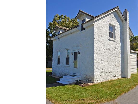 Beautifully remodeled Circa 1800 quaint two bedroom, two story home on 1 acre, partially wooded lot. New bathroom and replacement windows. Updated eat in kitchen, freshly painted throughout. Spacious living room. Off street parking for 3+ cars. Large shed. Side enclosed porch/entrance. Concrete tile roof. Affordable single home at less than a semi price. Low taxes. One of the two bedrooms is a walkthru.