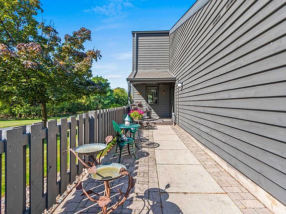 Wonderful, hard to find, END UNIT condo! Nicely updated and maintained 2 bedroom, 2.5 bath unit features a convenient and tastefully updated galley kitchen with solid surface counters and tiled backsplash. Enjoy views, including deer and turkeys, from the patio doors of the spacious living room. First floor office/den with patio door could possibly be a third bedroom. Upstairs you will find a large primary bedroom with walk-in closet and private bath. The second bedroom is just steps away from another upper level full bath. This association offers lawn care and snow removal as well as a clubhouse and outdoor pool for your entertainment. Is condo life for you?