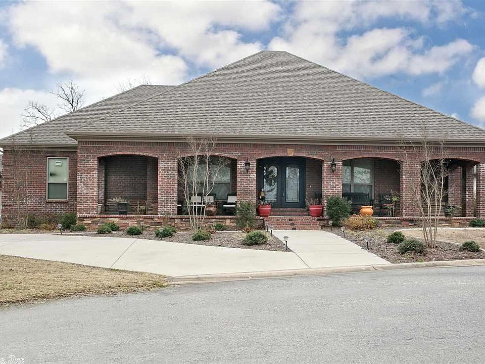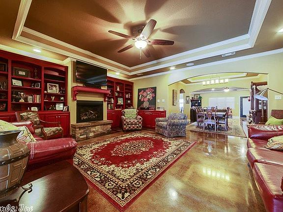 On the golf course with a shop! Custom built home offers 3 bdrms, 2.5 baths, office, 2 living areas, 32 x 24 shop, safe room & pool. Pretty living room has built in cabinets on each side of fireplace. Stained concrete throughout. Kitchen has hearth room w/fireplace, breakfast bar, granite counter tops, gas cooktop, double oven. Master bedroom is awesome, master bath has huge shower, double sinks, 2 closets. Other 2 bedrooms have jack-n-jill bath. Covered deck overlooks pool.