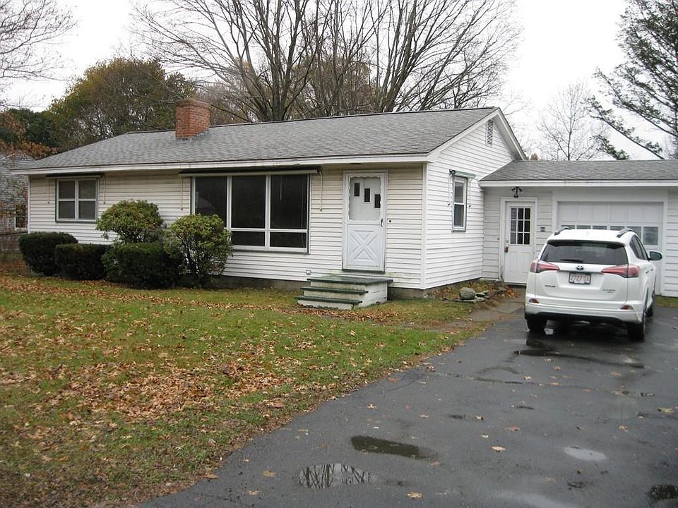 Sweet ranch with good location for commuting. Oversized, wood-paneled living room with dining area and fireplace for cozy, family meals. Hardwood floors throughout the three bedrooms, living/dining room and hallway. Back bedroom has a slider to a small deck. Many replacement windows, roof redone in 2008, furnace and hot water heater replaced in 2016, new septic installed December 2017. Fenced back yard for kids and pets. One-car garage has storage and workshop areas and access to the basement and back yard. A little updating will make this home a lovely residence or investment property.
