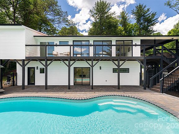 Let’s take a drive to the countryside and watch the yellow moon glow bright. Dance the night away as the sun sets over the Blue Ridge mountains. Discover this fully renovated home with modern touches, nestled on a hillside with year-round mountain views. Freshly refinished fiberglass in-ground swimming pool with tile border, solar heat, and slip-resistant natural stone flooring. The second living quarters are perfect for rental income or multi-generational living in a peaceful, rural setting. Free yourself from city life without sacrificing the convenience of modern amenities. A ten-minute drive to Blue Ridge Parkway, and twenty minutes to downtown Asheville. Fully loaded with high-end and custom finishes. No found restrictions, short-term rentals allowed. Wrap around deck, multiple outdoor spaces, open floorplan. Primary suite with built-in walk-in closet and slider to deck. So many expansive windows throughout with incredible views to capture every season.