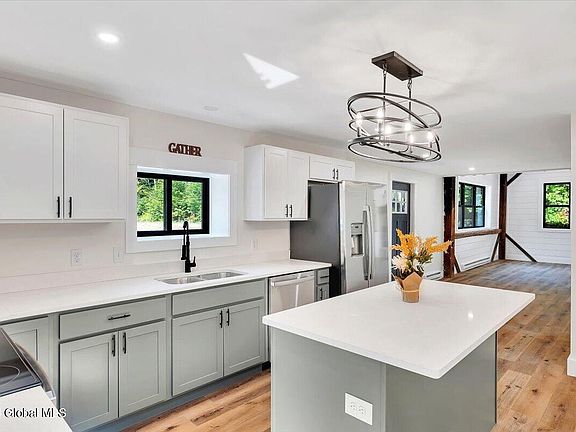 A home that seems like its out of a magazine, this property has been completely transformed. Once a barn that was moved onsite and turned into a home, this 4 bedroom 2.5 bath has been beautifully renovated. Exposed beams and a fieldstone fireplace give a rustic feel, while the kitchen and baths have all the modern feel today's buyer could want. Set on over 5 acres on a private road, a full en-suite on the third floor, high end kitchen cabinetry, stainless steel appliances and quartz countertops, this home is an absolute must see.