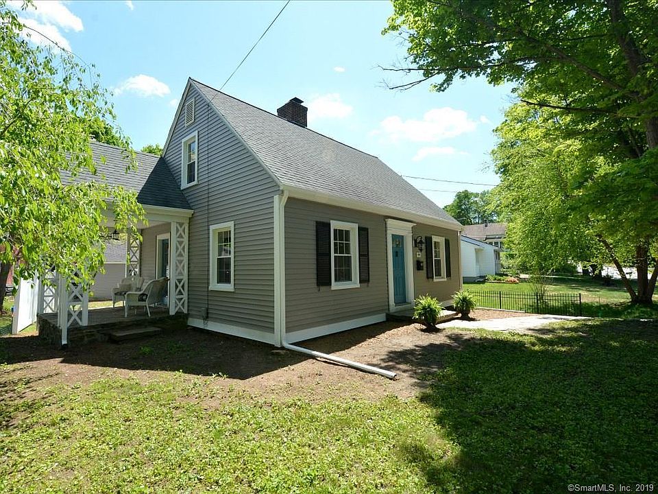 Cute as a button and completely renovated, all you have to do is move in! This charming 1940 cape has an open floor plan, hardwood floors, an eat in kitchen with island, farmhouse sink, granite counter tops, and stainless steel appliances. Living room is large and runs front to back, and features a fireplace and a french door that leads to a patio to the side of the house. Upstairs has two roomy bedrooms with lots of closet space and a spacious bath. Basement is dry and great for storage. The back yard is partially fenced in and has a one car garage with a potting shed, as well as another stone patio. Great home that has been meticulously restored. A fantastic value!