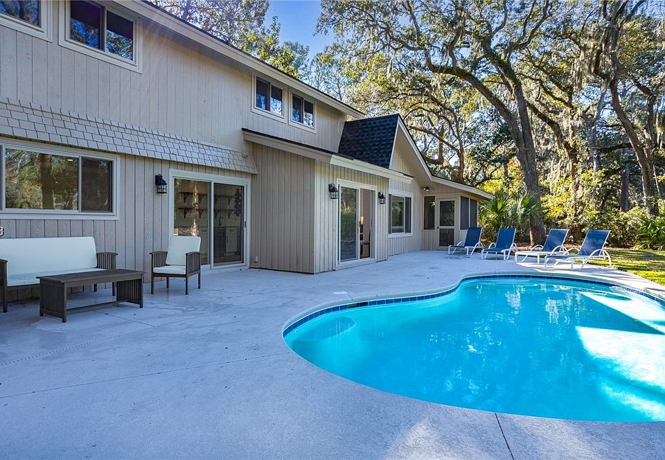Sea Pines Escape! As soon as you walk inside your eye will be drawn to the sweeping lagoon to golf course views over the private pool. It features two primary bedrooms on the first level, a gourmet chef's kitchen, massive wet/wine bar, screened-in porch, & windows everywhere flooding the space with sunlight. Meticulously crafted down to the studs, this newly renovated 4 bed, 3.5 bath coastal gem boasts high-end finishes everywhere you look. EVERYTHING new! Sold furnished. Projected to do over 150k in rentals. Prime location! Quick walk to the beach, harbour town, shops/restaurants. Live the coastal lifestyle you've been dreaming of!