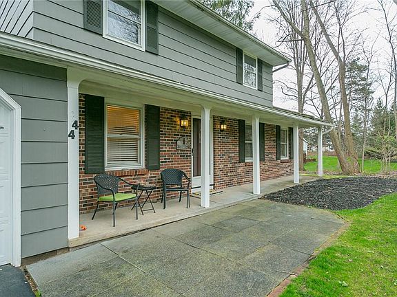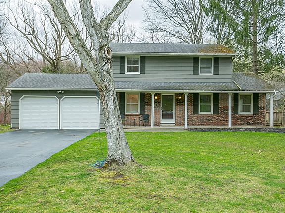 Delayed Showings Friday 4/22 at 11 AM, offers due Sunday 4/24 at 6PM. Bring your paint brush and don't miss this equity building starter home. Over half an acre lot located at the dead end of a quiet street. Center entrance colonial with covered front porch and two car garage. Heavy lifting of wall removal and opening up the living space has been done, floors need repair and refinishing. Fireplace and sliding doors to deck in family room. Pantry closet and first floor powder room. Formal dining room. Large master w/ walk in closet, Ceramic tile baths with updated vanity. Hardwood floors continue through out the bedrooms and the room sizes are generous. Full basement with laundry hook ups and Sauna. Large, private patio in rear of garage. Water heater 2014, roof approx. 10 years old. Coveted Fairport electric utilities. An opportunity to get into Fairport at a low price and make improvements to your liking to immediately increase your value.