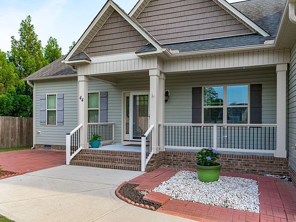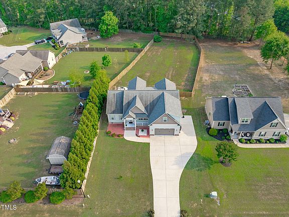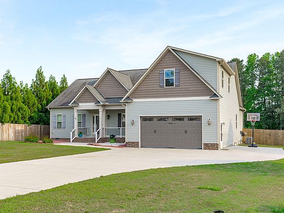Charming one and a half story home nestled on a flat, half acre lot with an expansive fenced-in yard, bordered by tree lined views for a serene outdoor setting! This 3 bedroom/ 3.5 bathroom home has one level living with the second floor showcasing a versatile flex room, full bathroom, and 542 sqft of unfinished space, ideal for storage or future expansion! The front of the home exudes warmth and hospitality with covered front porch and brick laid patios perfect for comfortable outdoor furniture or perhaps a few potted plants. Inviting entry opens to an elegant formal dining room with detailed wainscoting and flows into a spacious family room adorned with cozy gas fireplace. The eat-in kitchen provides additional seating, granite countertops and Stainless-Steel appliances. Retreat to the owner's suite, secluded from guest accommodations, graced with tray ceiling, walk-in closet, dual sinks, stand up shower, and a separate soaking tub. A half bath and functional laundry room are steps away from the attached garage entry and equipped with cabinets and shelving for effortless organization. Wide walkway, generously sized driveway, and an adjacent parking pad allows for multiple resident/guest parking. This home blends comfort, functionality, and outdoor living with a screened porch for year-round use, 2 decks, and an expansive back patio for entertaining! Located near I40, 30 minutes South of Raleigh and close to the amenities of Fuquay Varina and Garner!