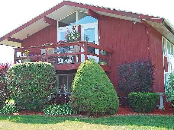 Horse lovers paradise! Beautiful, bright raised ranch home w/open floor plan. 4BR/2 BA. Well built 30 x 60 equipment barn and 11 horse stall stable with tack room. 4 car garage. Tennis court. Large pond. Tear drop driveway. Parking for 20+ cars. House is very airy with lots of windows, skylights, vaulted ceilings, recessed lighting, 2 decks with breath taking views, 2 story foyer, 2 wood burning fireplaces, post & beam ceilings, galley kitchen, built-in floor to ceiling book shelves. Lovely landscaping.