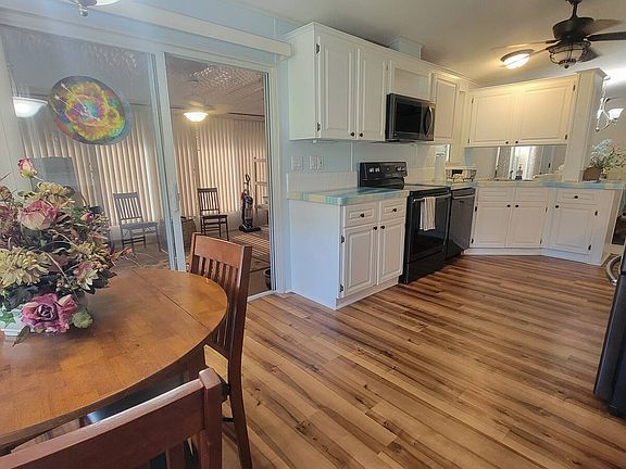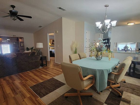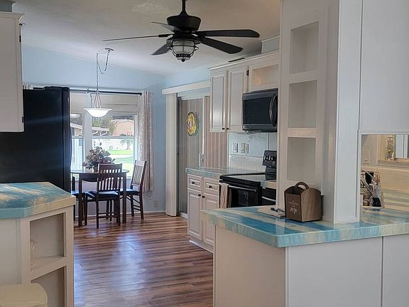 This beautiful 1,456 sq. ft. Palm Harbor model offers comfortable, low-maintenance living with 3 bedrooms, 2 bathrooms, and gorgeous wood laminate flooring throughout. The bright and inviting layout includes a spacious living and dining area, an ample kitchen with generous cabinet space, and a cozy breakfast nook. A charming bonus Florida room provides extra space to relax or entertain. The primary bedroom is generously sized and features an en-suite bath with a dual vanity and walk-in shower. Additional highlights include a covered carport, hurricane shutters, storage shed, and A/C & heating system replaced in July 2023 and a new roof in 2017 for peace of mind. Residents of Plantation Oaks enjoy unlimited access to a stunning array of amenities: a beautiful clubhouse, heated Olympic-sized pool, hot tub, tennis and pickleball courts, shuffleboard, dog park, and more. The affordable monthly fee covers lawn mowing, driveway and street edging, irrigation, twice-yearly fertilization, curbside trash, bulk and recycling pickup, as well as a premium cable package with 250+ channels, three HD boxes, and a wireless modem and router. Plantation Oaks is a pet-friendly, gated land-lease community with 24/7 attendant security and two fully fenced dog parks. Make sure to check out the virtual tour. Don't miss this opportunity-call today to schedule your private showing!