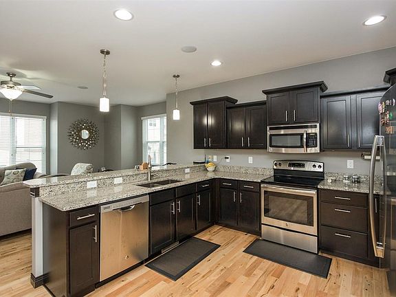 Spacious 3 bed/3 bath townhouse in Coralville's Old Town neighborhood. End unit features beautiful hardwood throughout main level with 9' ceilings and open floor plan. Kitchen boasts espresso cabinets, granite counters, and breakfast bar. 3 bedrooms upstairs, master suite includes walk-in closet, double vanities, and walk in tile shower. Main floor also includes pantry, powder room, and laundry room. Balcony off dining area for easy entertaining. 2 car attached garage as well as parking out front. Close to bus lines and retail.
