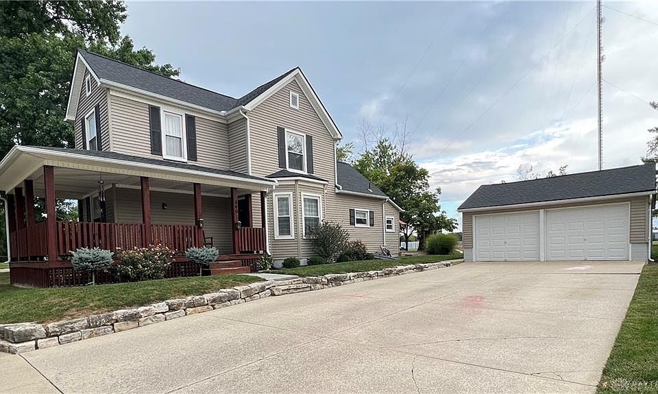 This home greets you with a beautiful landscape, spacious driveway leading to a large 2 car garage, wraparound front porch, and a newer deck out back. Privacy awaits with no rear neighbors as you look out to a large back yard. On the main level you will find a spacious living room with shiplap wall, bedroom right off the living room that can be used as a flex room. Upstairs are two large bedrooms, decent sized closets, and plenty of storage in a stand up attic. The location of this house presents easy access to the bike way, up town Brookville, and Golden Gate park. Updates to the big 4 and more! Roof 2017, Water Heater 2015, 95% High Efficiency Furnace 2015, 13 SEER Air Conditioning 2015, Carpet throughout 2014, Paint throughout 2022, Newer back entry doors, garage doors, light fixtures, plumbing fixtures, garbage disposal, back deck, and landscaping!