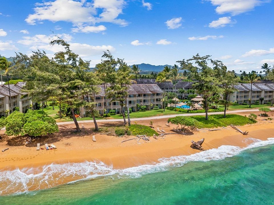 Enjoy the ocean breeze and wake up to the crashing waves just steps from your private lanai of this ground-floor oceanfront studio condo! Escape into the tranquility of this tropical oasis with lush gardens surrounding you. Step out onto the scenic beach straight from your lanai just beyond the Kauai Coastal Path. Paradise awaits with a swim in the ocean, dip in the crystal clear blue waters of the pool, or relax in the jacuzzi sipping on a refreshment from the Tiki Bar.