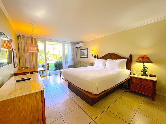 This clean ground-floor unit in the Moloka'i building on the oceanfront side of the property is the perfect blend of accessibility, convenience, and tranquility. From the lanai, you can enjoy the soothing trade winds, beautiful ocean views, sounds of the waves, and garden views. There is a peek of ocean view from inside the unit. Exiting your front door or the rear lanai onto the grass, you'll find the beach, Coconut Marketplace, Lava Lava Beach Club, the lobby, parking, coffee shops, restaurants, and the pool area just seconds away. The first-floor location is ideal for guests who don't want to deal with stairs and want direct access to the grass and beach.