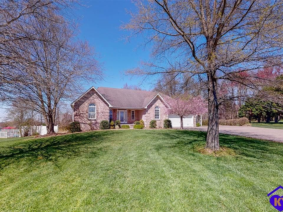 Welcome Home to 440 Andover Drive. Situated on over 1.5 acres next to the historic town of Glendale KY, this brick ranch features gleaming hardwood floors thruout the main level. The desirable open floor plan also includes a split bedroom design. The guest bedrooms are spacious and the primary bedroom includes 2 large walk-in closets. The walkout basement includes a family room, full bath, and game room plus plenty of storage area and a utility garage complete with a work bench. You will definitely enjoy the 2 gas log fireplaces to take off the chill and the in-ground pool (18x36 with 6' deep end and slide and deck jets and 4 fountains) to cool off on those hot summer days. Schedule a personal tour today!