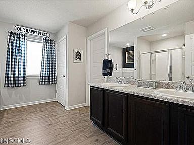 Above and Beyond! This popular floor plan features an open area ideal for entertaining family and friends. This 4/2 has a split floor plan giving privacy where necessary. The home show cases luxury plank flooring throughout the entire home perfect for an active family. The kitchen has granite counter tops, tile back splash, large center island breakfast bar, plenty of storage space, stainless steel appliances and a pantry. The master suite has a large bedroom with lots of natural light and the master bathroom features separate shower, garden tub, dual vanity and large walk-in closet. Surrounding the garden tub, you will love the tile accents giving added design.
