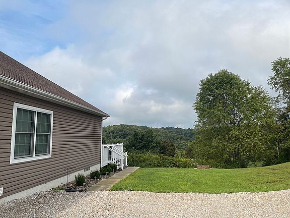 Beautiful newly built (2014) one family, single story, custom home just outside of town (located on route 18 near Sistersville). Get amazing country views just minutes from town. There is a very large (20’ x 40’) deck with a spectacular view perfect for a barbecue or spending summer evenings relaxing. There is an oversized two car garage with two separate garage doors and outside access door. 27’ above ground swimming pool with new deck. New outbuilding. A full unfinished basement with septic access and gas. Separate basement entrance from the outside. The main living area has an open floor plan with 9 and 10 foot ceilings throughout. Separate office/gym space. Large dining room and open floor plan makes family gatherings easy. Custom 42” maple cabinets in the open kitchen with large island and oversized walk in pantry. Master bedroom with separate entrance from the large deck- and large walk in closet also includes a large ensuite with shower as well as 5’ oversized soaking tub. 30 year shingles.