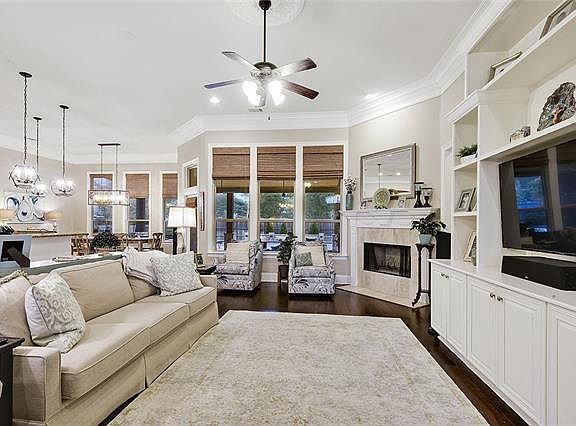 Richly appointed, luxurious home. 4 bedrooms plus large office including separate guest suite. Hand scraped wood floors in all bedrooms. Rich crown molding, hi-end light fixtures, butler's pantry w/wine fridge & desk area off the expansive, open kitchen. All counters & vanities are granite. Custom tiled master rain fall shower. Love, love the extended patio w/wood ceiling, fireplace & travertine tile that leads to heated, saltwater pool & spa. Live here & you will not want to leave your own private resort.