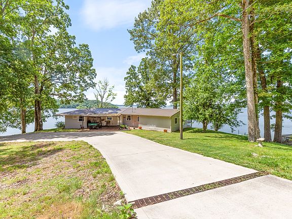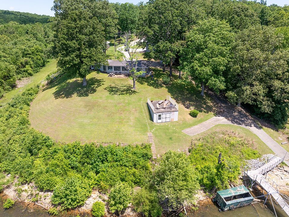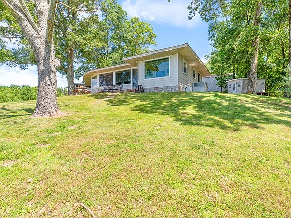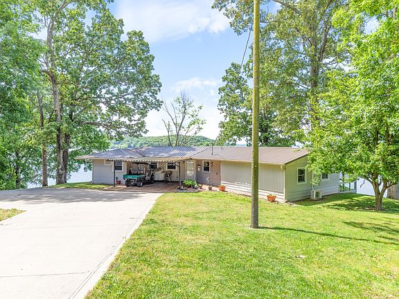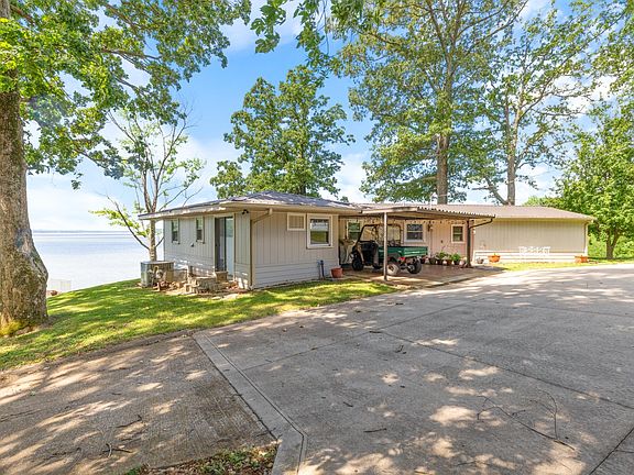 The prettiest view from Paris Landing to Pickwick! If you have been on Kentucky Lake/TN River, you know this property! You won't find another home on the river with this view and all the amenities it has to offer. Nestled in the trees with panoramic views, this property has everything you need and want. Featuring 3 bedrooms and 2 bath, a great room with incredible views, patio and screened-in porch; this lake house is what dreams are made of. There is an additional shed with electric and air, for all your tools and fishing gear. This property has a concrete drive making easy to load/unload your boat right into the water on your private ramp and private covered dock with two slips and electricity. An additional boat house is nestled into the hillside for the water toys with a patio on top for sunset viewing.