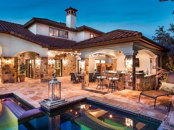 Santa Barbara Chic located in Eanes ISD. This sophisticated home features classic Spanish custom touches & updated with gorgeous plaster walls. The main level opens up to an expansive back yard with beautiful spacious patios,perfect for entertaining, and lush landscape with a play yard and tranquil pool. The master suite and guest suite are on the main level. The 2nd level includes 3 en-suite bedrooms and a media room. LOW TAX RATE and EANES ISD!!