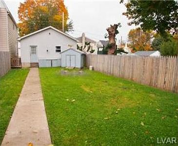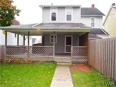 This charming 1,320 SF Catasauqua Twin with oversized 2.5 car garage is a Must See! It's been lovingly updated with quality amenities by current owner. Exterior offers newer vinyl siding, windows, private covered deck, utility shed and large fenced yard. You'll be delighted by the interior: Eat-in kitchen with modern 42" cabinetry, Corian counters, and Pergo flooring; Hardwood floors under carpet in LR/DR; 1st flr powder room; 3 spacious BR's and remodeled BA on 2nd flr. Systems are in terrific condition-8 yr efficient oil furnace (2004), C/A (2000), pellet stove in LR, plaster walls and updated 200 Amp wiring. Washer, Dryer & Refrigerator remain. Tons of storage space. Walk to Community Park & Pool. (Low taxes-2013 $2633.61)